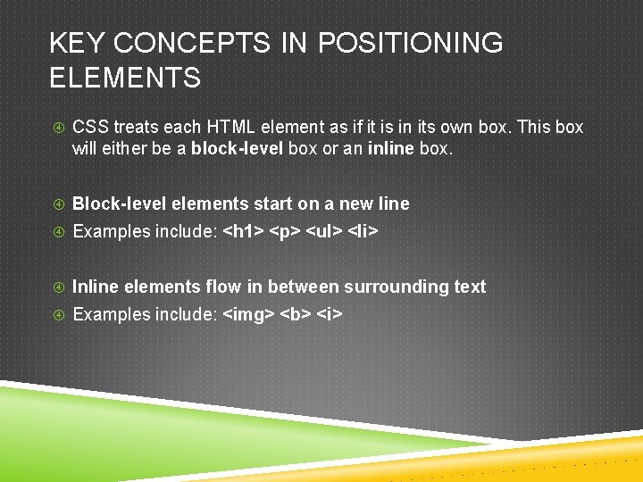 Key Concepts in positioning elements