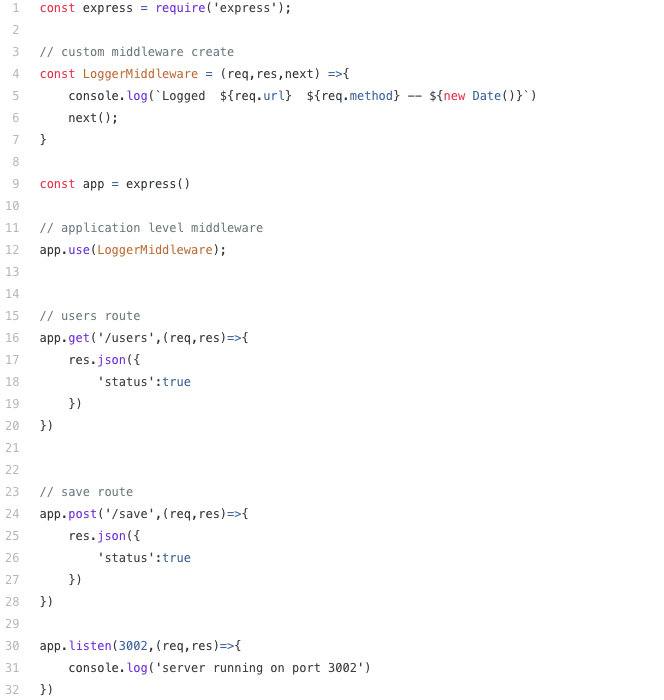 - Auth middleware Suppose we are having five routes getUsers,getDetails,updateDetails,isLoggedIn,isLoggedOut